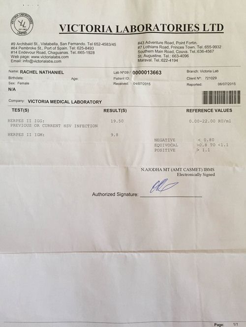 Shortly after the relationship ended I was diagnosed with an incurable sexually transmitted disease (July 2015 - See results below). I cannot begin to describe the shock and horror that had fallen on me; the shame and guilt. How could this have happened to me? Well, I knew the answer to this question. My lifestyle choices were not in line with God’s word, and although I was in a committed relationship, it did not justify the fact that I was not walking in obedience to what God has laid out for us. A million questions flooded my mind as my thoughts consumed me. Who would ever accept me in their life now? Who could ever love someone with this? What will become of my hopes of having a family of my own? Life had changed overnight for me. It all seemed like a terrible nightmare. There had to be a mistake.